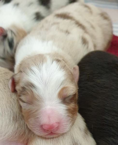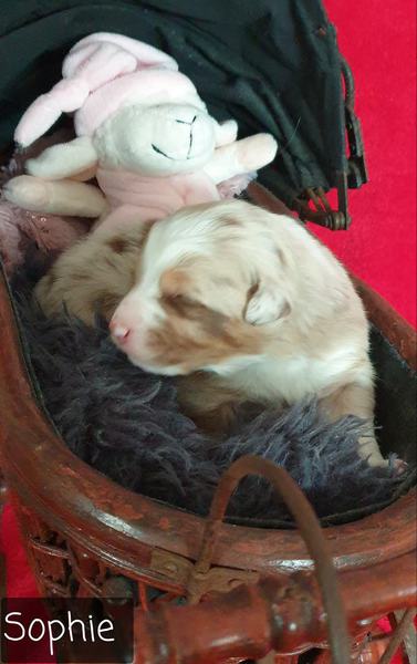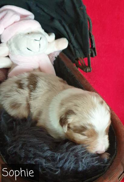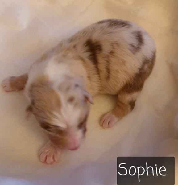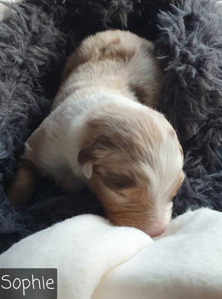 06: 15 Uhr Welpe Sophie Red Merle Hündin vergeben