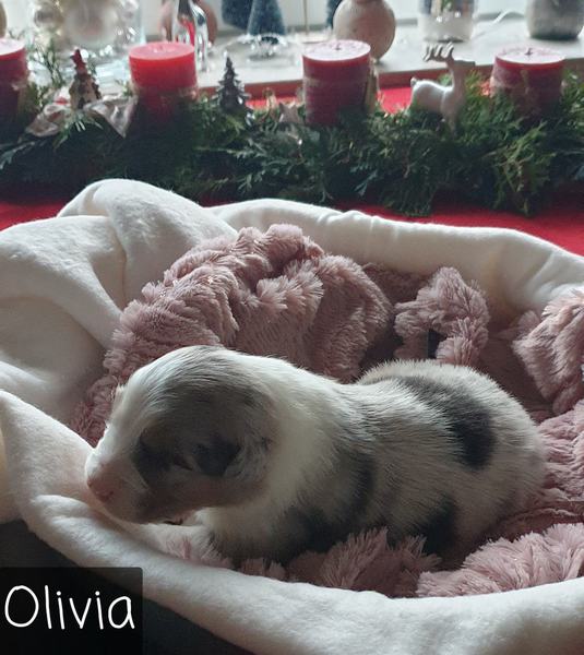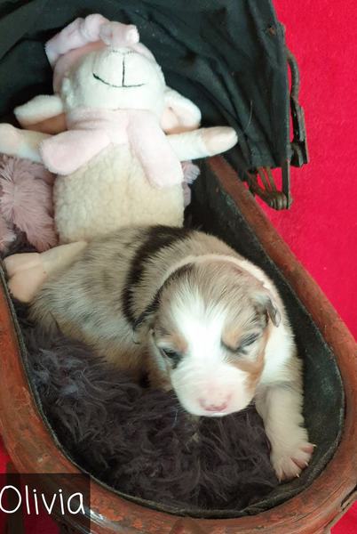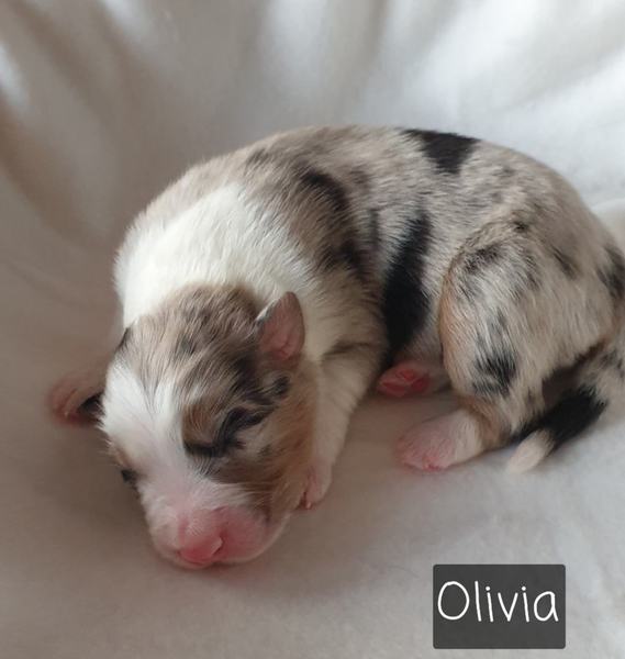 06: 20 Uhr Welpe Olivia Blue Merle Hündin vergeben