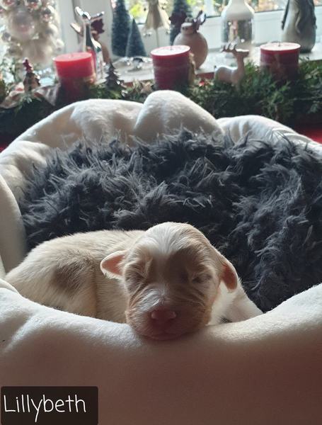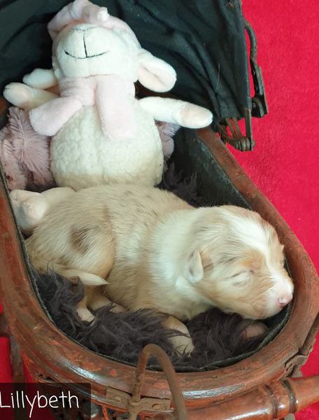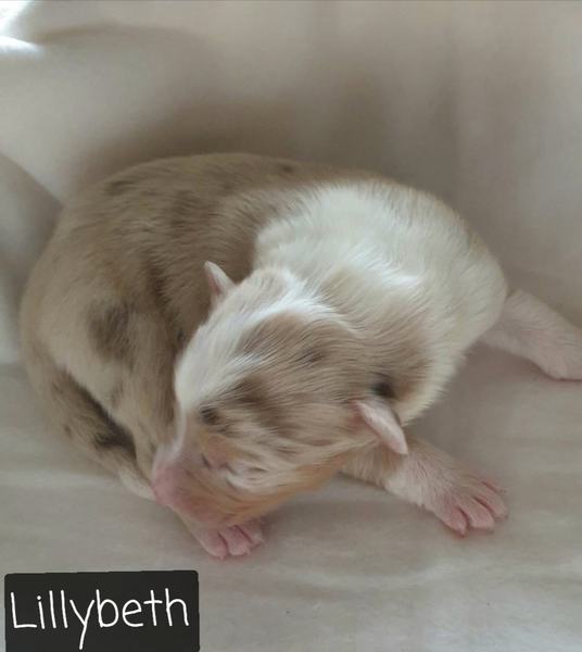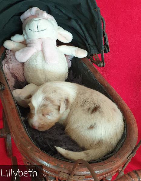 04: 55 Uhr Welpe Lilybeth Red Merle Hündin vergeben