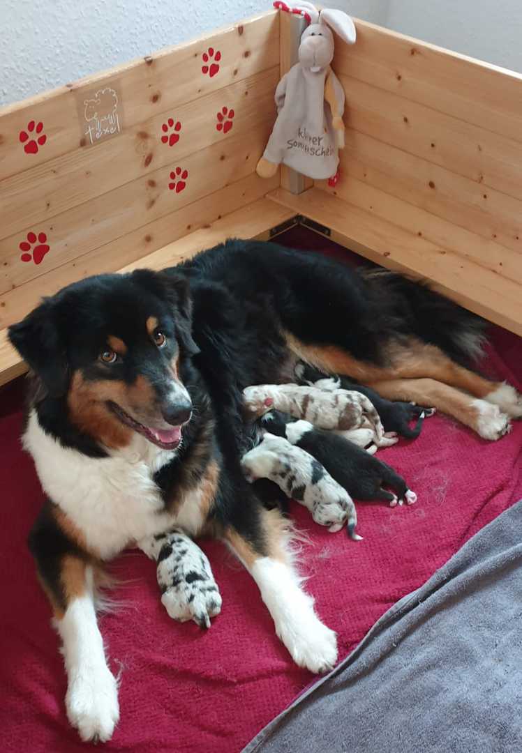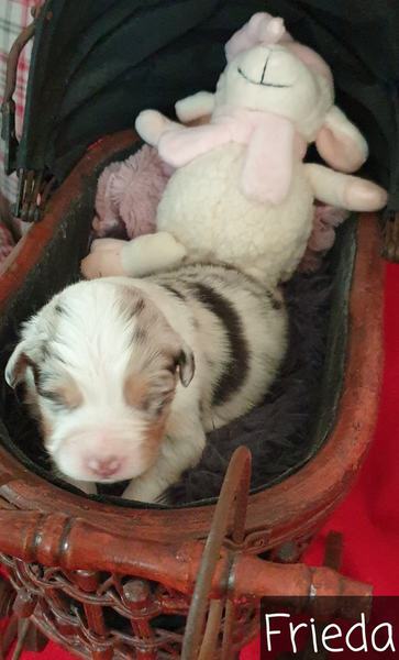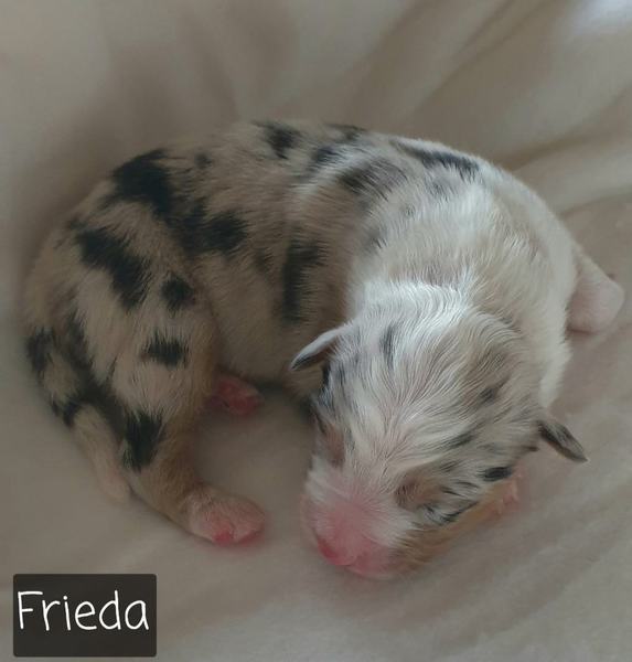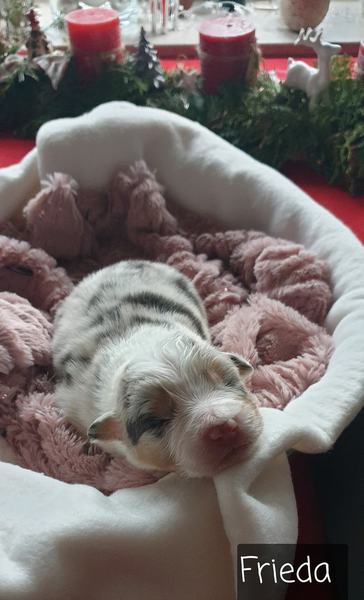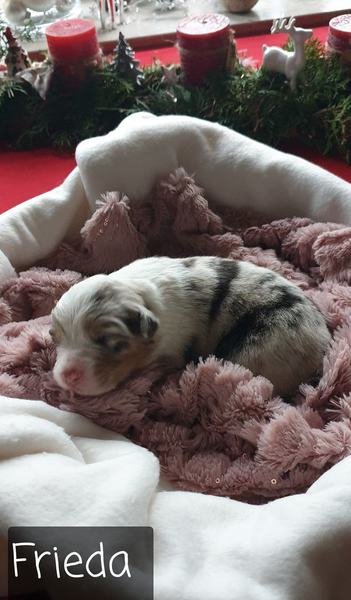 04: 25 Uhr Welpe Frieda Blue Merle Hündin vergeben