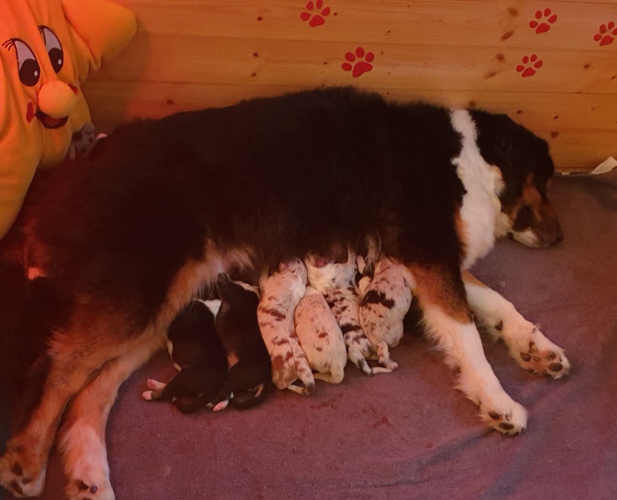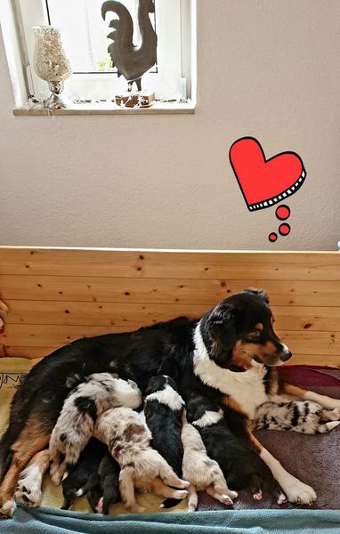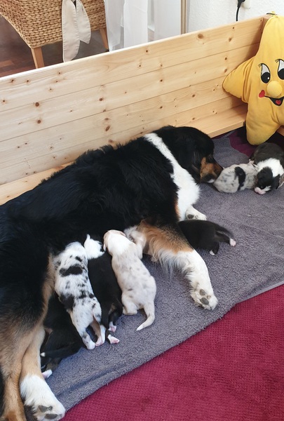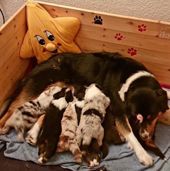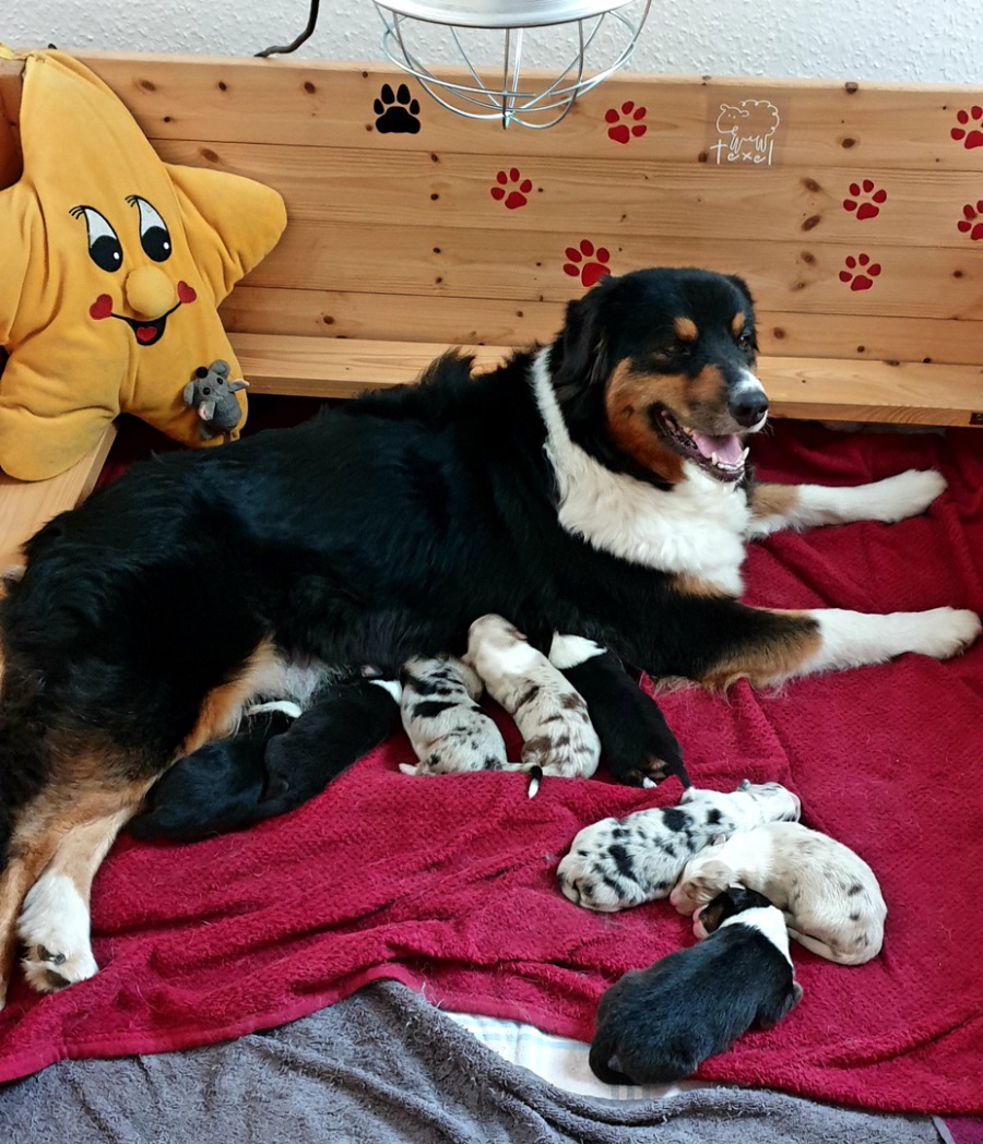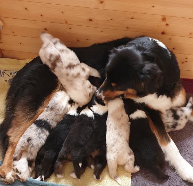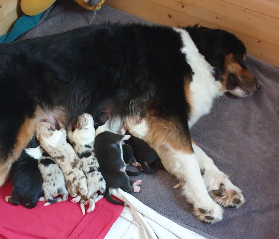Wir haben es geschafft ... Kate hat heute innerhalb von 4 Stunden 8 wunderschönen Welpen das Leben geschenkt.